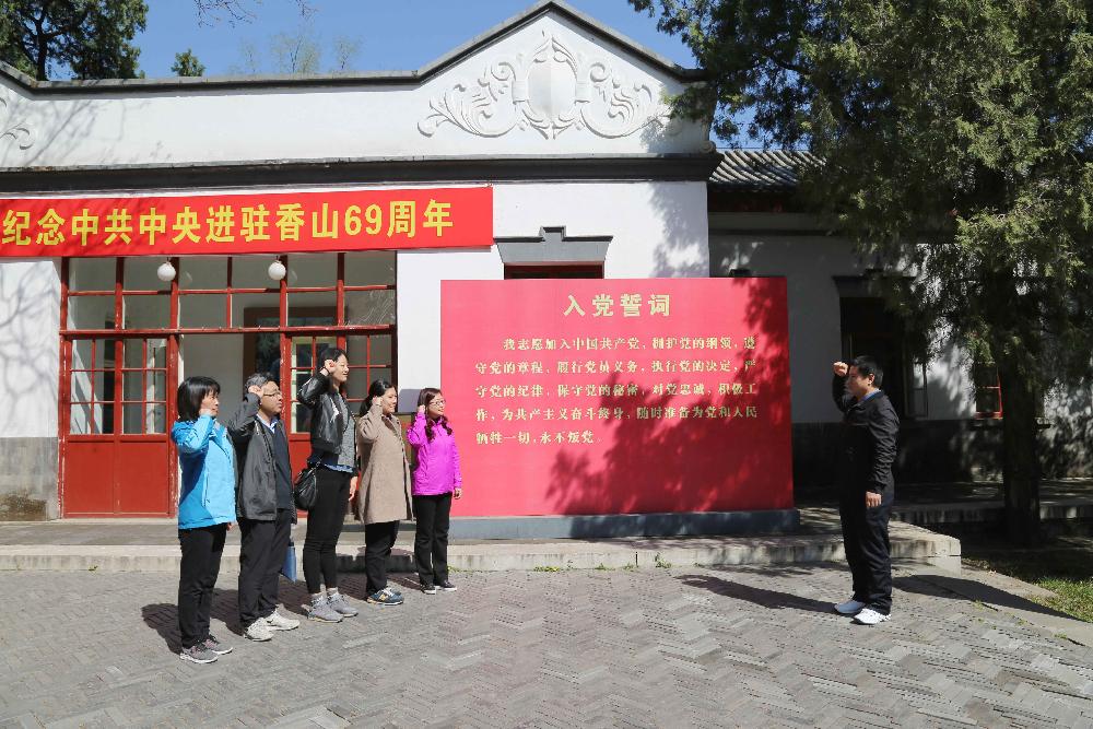 在香山双清别墅前,全体党员面对党旗,重温了入党誓词,进一步提升自己的党性修养。随后,大家认真观看了《毛泽东在双清活动展览》,参观了毛泽东主席当年生活工作过的原状陈列。