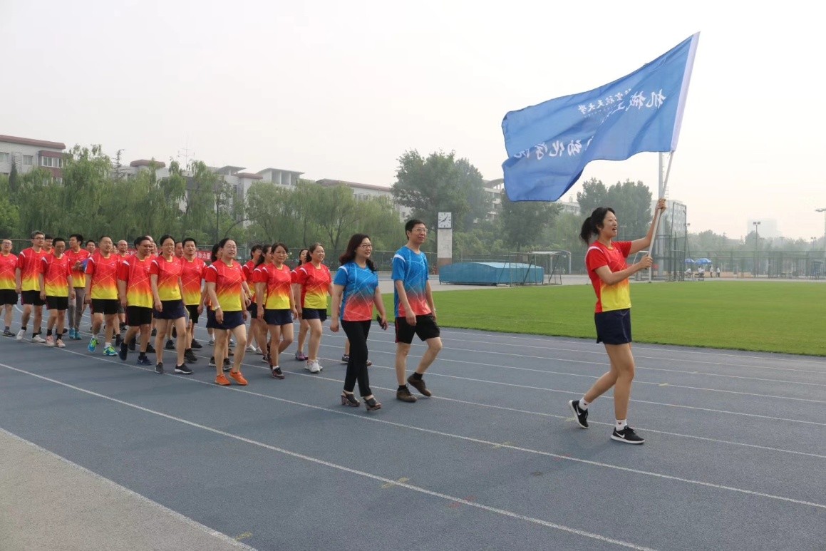 入场式中,yl6809永利官网方阵在丁希仑院长和邓怡书记的带领下,以朝气蓬勃的面貌,迈着整齐有力的步伐通过主席台,“yl6809永利官网,魅力美丽无限”铿锵有力的口号在赛场上回荡,充分展现了yl6809永利官网教职工团结融合,积极向上的精神风貌。