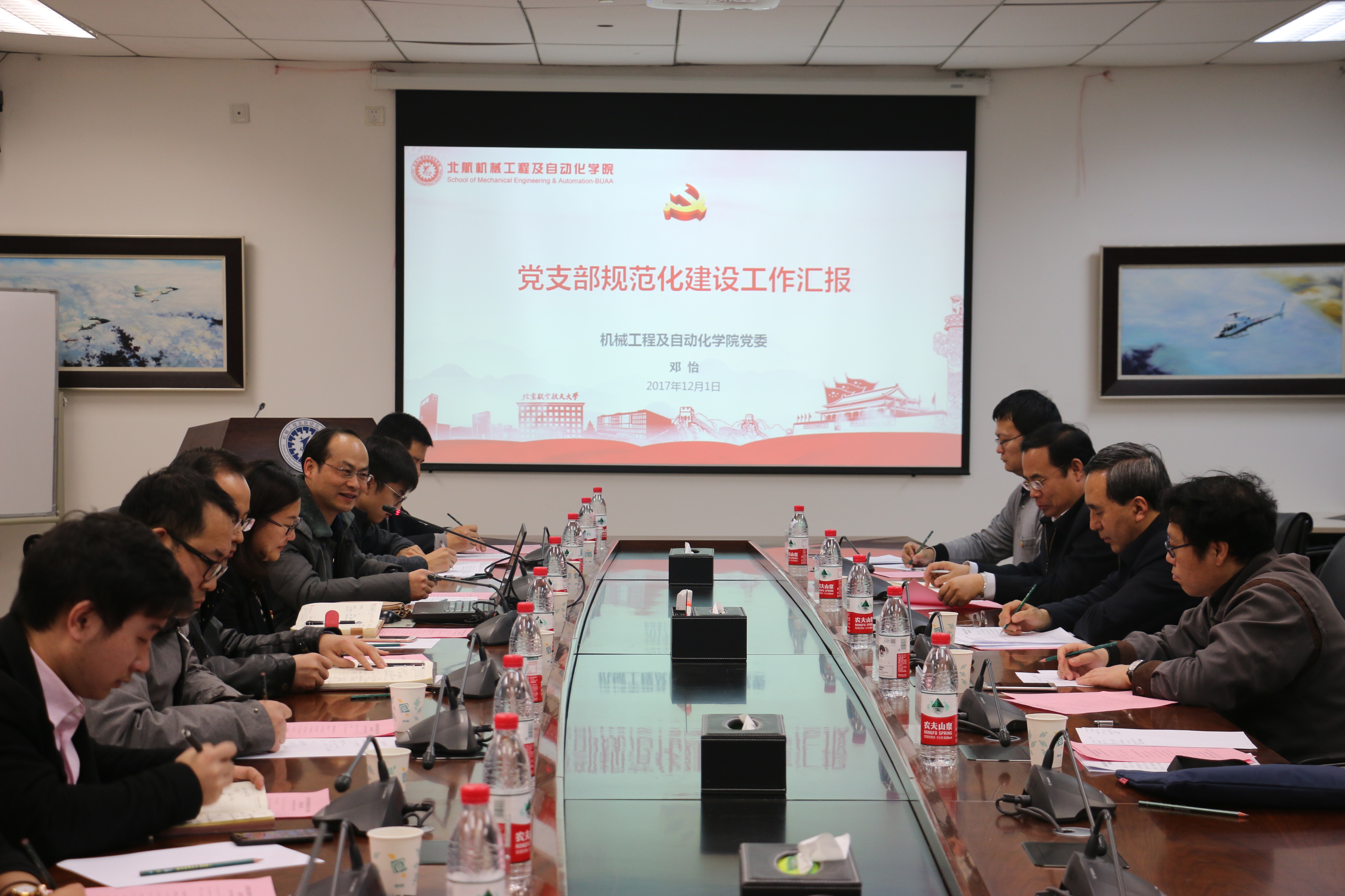 yl6809永利官网党委书记邓怡代表学院党委进行工作汇报。学院党委深入贯彻落实习近平总书记关于加强基层支部组织力的重要指示精神,高度重视、全面推进“B+T+X”体系和“一规一表一册一网”党支部规范化建设工作,以标准夯实基础、以特色驱动活力、以先进引领发展。注重“以标准夯实基础”:巩固思想基础,强化党委政治属性;抓好基本队伍,激活支部主体作用;坚持制度建设,规范支部基础工作;加强作风建设,强化党员先锋意识;加强基础保障,确保支部工作成效。强调“以特色驱动活力”:健全组织体系,在“静态稳定”中强化“动态优化”;严格党员管理,在“全程规范”中强化“关键节点”;严肃组织生活,在“规定形式”中强化“自选动作”;激活主体作用,在“人人争先”中强化“头羊效应”。聚焦“以先进引领发展”,学院党委注重打造基层支部典范,着力打造党员专家团队,发挥教工党员先锋模范作用,学生党员带头,争当校园科技先锋,打造以“感动北航”为代表的党建特色品牌活动。