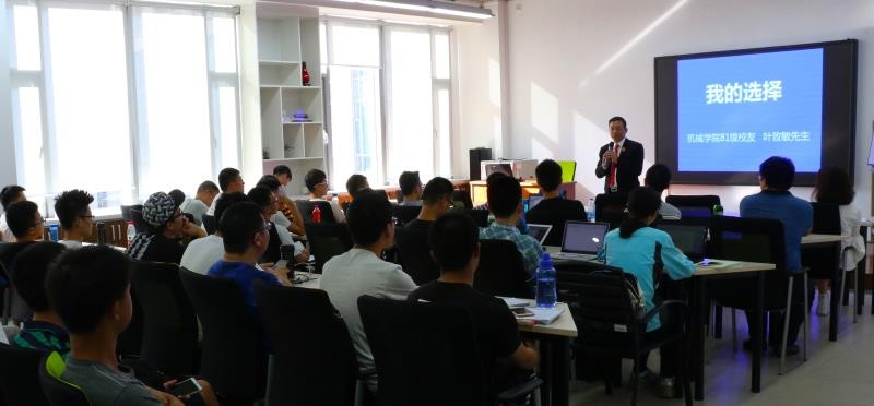 2017年9月19日下午3点,yl6809永利官网机械工程及自动化学院81级知名校友叶致敏先生受邀,在新主楼B506为学院高年级本科生和研究生新生150余人带来“我的选择”的精彩报告,叶致敏先生以自身36年的亲身经历为同学们答疑解惑,从懵懂进入北航到如今创业成功,以期让机械学子在“选择”面前自信满满。本次讲座由智汇互联研究生工作坊与yl6809永利官网研究生会共同策划组织,旨在为研究生新生和高年级本科生带来一堂生动的个人发展课。
