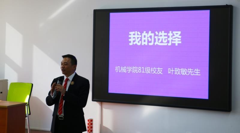 报告中,叶志敏先生围绕“选择”,分享了大学生活、求职以及多年工作的心得感悟。从讲述大学生涯中学习与玩乐之间的选择,告诫同学们校园时光不可荒废,充实自己才是第一要务;到分享参加工作初期基层锻炼与“白面书生”间的选择,告诫同学们工作中也要秉承积极进取、不断学习、脚踏实地的理念;再到细数事业生涯几次职业转换做出的选择,告诫同学们在日复一日工作中,始终坚持理想,切勿安于现状。