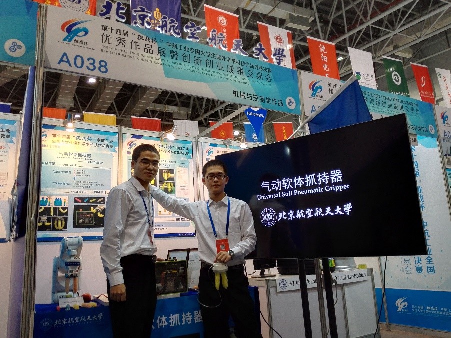 龚哲元团队针对现有机械手和抓持器刚性较大、价格昂贵、控制复杂和安全性不能保证等问题,设计并制造了气动软体抓持器,探索并总结了软体抓持器的制造工艺,获得全国大学生“挑战杯”一等奖,完成了相关成果转化。同时完成了国际著名机器人与自动化公司FESTO“仿生学习网络(Bionic Learning Network)”项目,相关成果获MIT科技评论(MIT Technology Review)、英国每日邮报(Daily mail)、国际著名出版商Springer等知名媒体撰文报道。该项目设计了仿生软体章鱼触手,采用气动控制方式可快速实现弯曲缠绕运动,同时能够有效地吸附物体,将吸附与缠绕两种方式结合,实现对多种物体的安全、无损、稳定抓持。