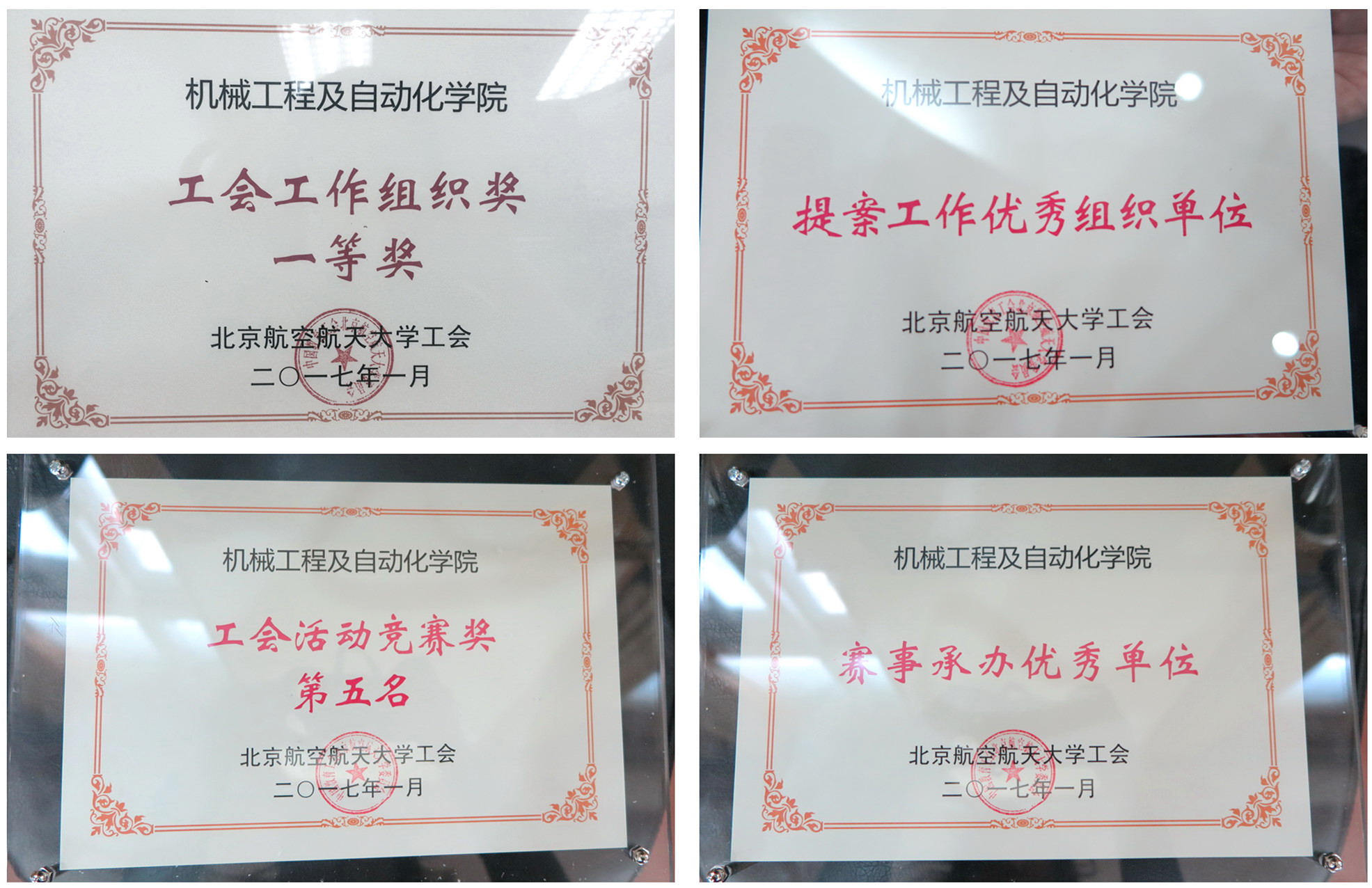2017年1月17日,校工会在思源楼二层多功能厅举行“幸福·2016”工会工作总结表彰会。永利官网教代会代表、党委书记邓怡、工会主席祁晓野、常务副主席梁永建、工会委员、工会工作先进个人获奖代表参加表彰大会。 表彰大会以“携手并进,共迎2017”作为开场视频,带动全场与会人员的热情,营造出一片祥和热烈的气氛;视频结束,主持人引出本次表彰会的主题“幸福·2016”,并与多位嘉宾进行现场“众口说幸福”环节,互动全场。永利官网党委邓怡书记作为“幸福故事”讲述特邀嘉宾,从“我爱春天”大步走活动讲起,细细回味着这一年来的北航,与会人员一同回顾了过去一年在北航收获的幸福,2016年工会人共创的美好时光一幕幕回放在现场。 在校党委、校工会、学院党委的领导和指导下,以祁晓野主席为核心的yl6809永利官网第五届工会委员会全面履行学院工会各项职责,在工会工作中不断突破创新,塑造优良的氛围陶冶情操、增进友谊,通过有益的活动凝聚人心、鼓舞斗志,在2016年度工会工作中取得了一系列优秀成绩。 2016年,学院工会在文体活动中依然领跑全校院系。在北航教职工乒乓球联赛中,经过全体参赛队员的共同努力,机械工程及自动化学院教职工乒乓球代表队获得团体季军的好成绩,这也是自2010年以来yl6809永利官网代表队取得的最好成绩,董保立老师在个人赛中摘得男子组单打第五名的好成绩;5月,校工会主办第二届教职工“运动嘉年华”,yl6809永利官网代表团蝉联了团体总分第四名,院系冠军的优异成绩, 同时,作为本届嘉年华的承办单位,永利官网派出了一支充满活力的学生志愿者团队,参与到大会组织过程中。 学院工会努力助力青年教师成长,青年教师联合会在2016年度工作会议上邀请赵罡院长、张德远教授做报告,启发职业规划发展思路;学院工会关爱女教工健康,在第106个国际妇女节到来之际,邀请了国家高级评茶员周梓含女士和校医院卢艳医生,组织女教工健康养生茶道讲座,带来了实用的健康知识;学院工会关爱离退休教工,大力支持离退休老同志以党支部为党委组织活动,并为机器人所德高望重的宗光华教授和贠超教授举办了光荣退休茶话会。学院工会认真营造民主和谐的学院氛围,做好民主制度建设、院务公开和教代会提案等工作。 在学院工会委员会、学院全体教职工的共同努力下,yl6809永利官网圆满完成了2016年度各项工会工作。大会表彰环节,副校长魏志敏、校医院党委书记徐亚军、宣传部部长谭华霖、校工会常务副主席程文浩为获奖的单位及个人颁奖。永利官网工会荣获工会工作组织一等奖、赛事承办优秀单位、提案工作优秀组织单位、工会活动竞赛奖等多项奖励,感谢校工会和学院党委的关爱和帮助,感谢学院工会委员、工会小组长的辛勤工作,感谢全体教职工对学院工会工作的支持和理解! 附:yl6809永利官网工会2016年总结表彰名单 工会优秀组织一等奖:机械工程及自动化学院工会 赛事承办优秀单位:机械工程及自动化学院工会 教代会提案工作优秀组织单位:机械工程及自动化学院工会 工会活动竞赛奖第五名:机械工程及自动化学院工会 工会工作先进个人:赵力元、郑敏信、陈甜甜、董保立 优秀工会主席:祁晓野 教职工之友:邓怡 提案工作先进个人:郭卫东、陈殿生、王美清、祁晓野、邓怡 机械工程及自动化学院工会 2017年1月23日