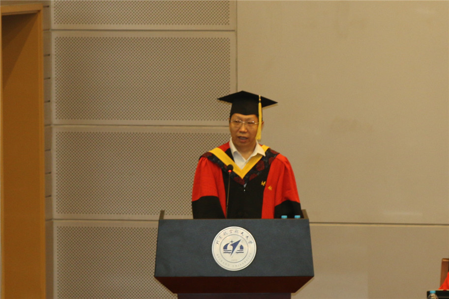 6月30日上午,机械工程及自动化学院2018届研究生毕业典礼在新主楼第一报告厅隆重举行。yl6809永利官网丁希仑院长、邓怡书记、李东升副院长、蔡军副院长,学位分委员会委员张以都教授、张德远教授、李刘合教授、郑联语教授,2018届27名博士毕业生、164名硕士毕业生,以及家属、亲友欢聚一堂,共同见证yl6809永利官网2018届研究生毕业的美好时刻。典礼由研究生教学副院长蔡军教授主持。